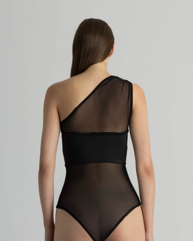 Ένα μοναδικό κορμάκι που συνδυάζει την αιθέρια υφή και με την τολμηρή γεωμετρία. Σχέδιό με έναν ώμο και διαφάνεια στο πάνω και κάτω μέρος. Η περιοχή του στήθους καλύπτεται με ελαστικό ύφασμα για απόλυτη άνεση και σταθερότητα, ενώ διαθέτει κούμπωμα στο κάτω μέρος εξασφαλίζοντας την πρακτικότητα και άψογη εφαρμογή. Φόρεσέ το με ψηλόμεση παντελόνα ή midi φούστα και ολοκλήρωσε το look με υπέροχες μπότες,για εμφανίσεις που κερδίζουν τις εντυπώσεις από το πρωί μέχρι το βράδυ. Σύνθεση: 90% Pes, 10% Sp Σχεδιασμένα & Κατασκευασμένα στην Ελλάδα.