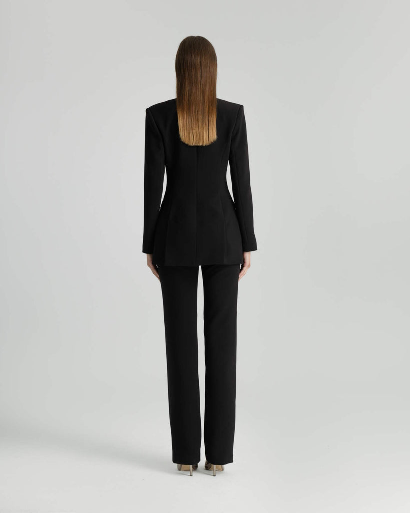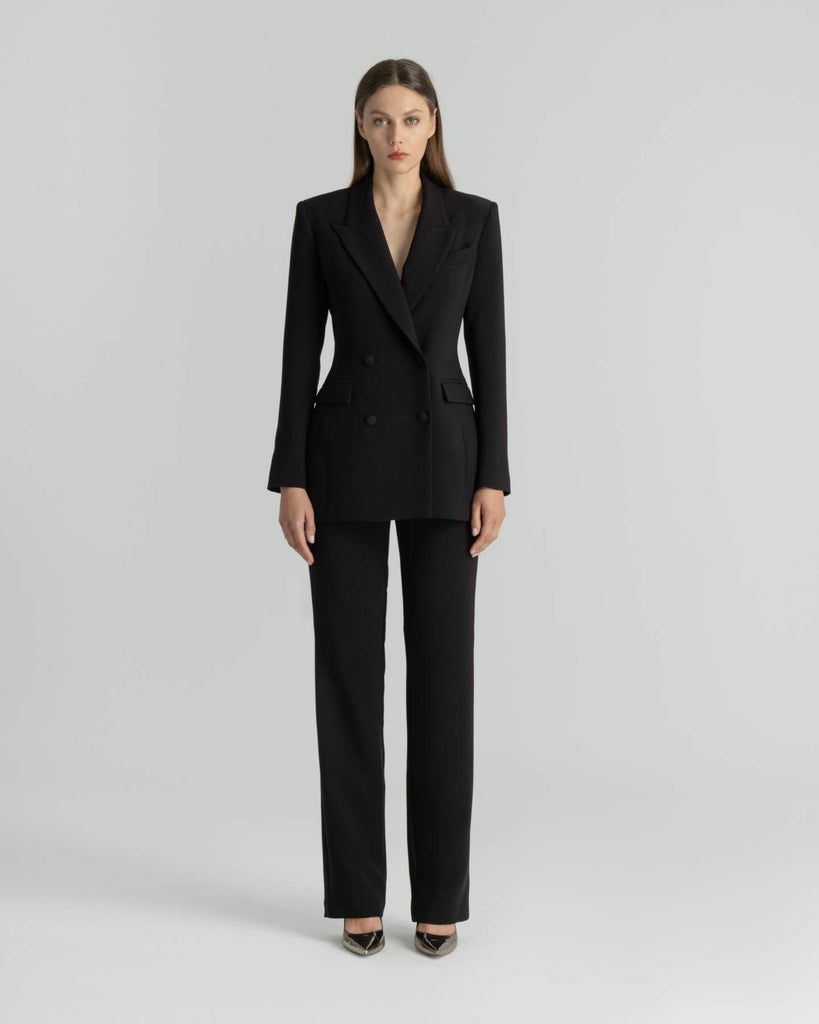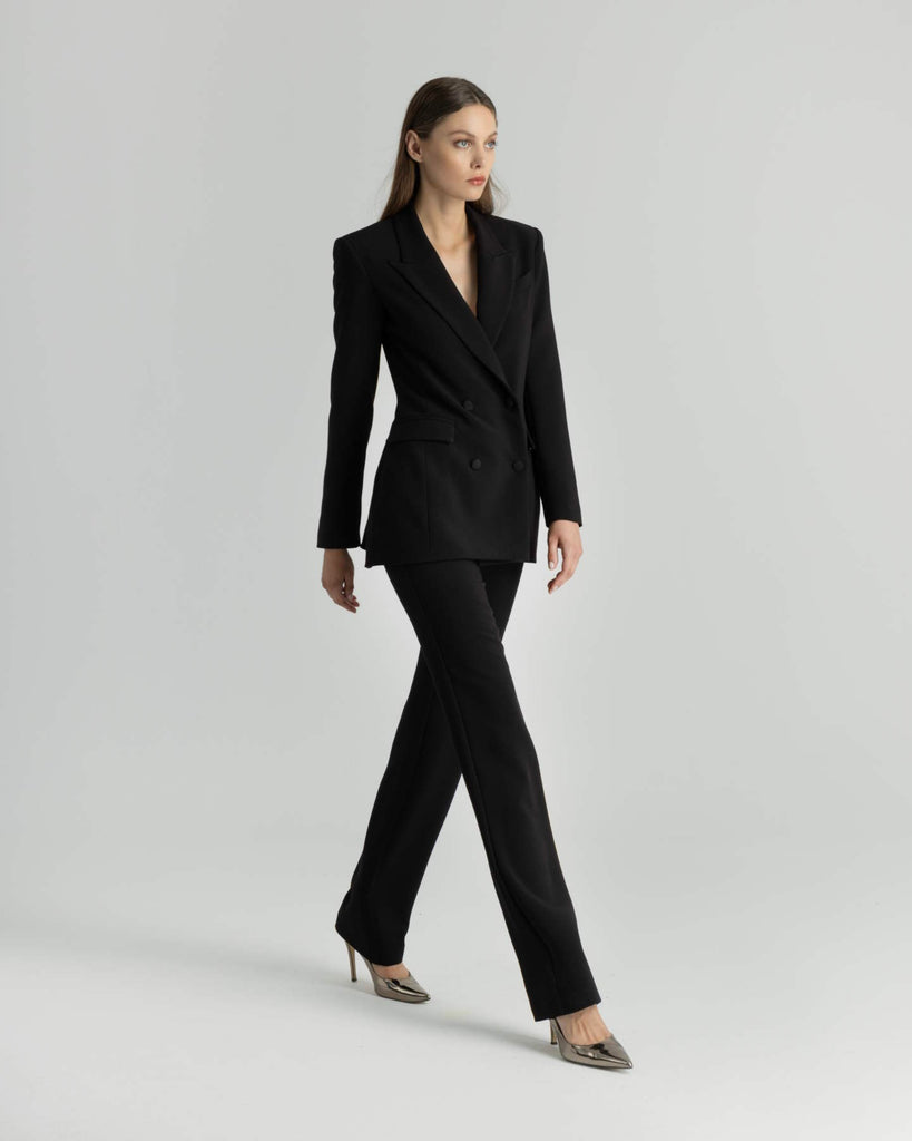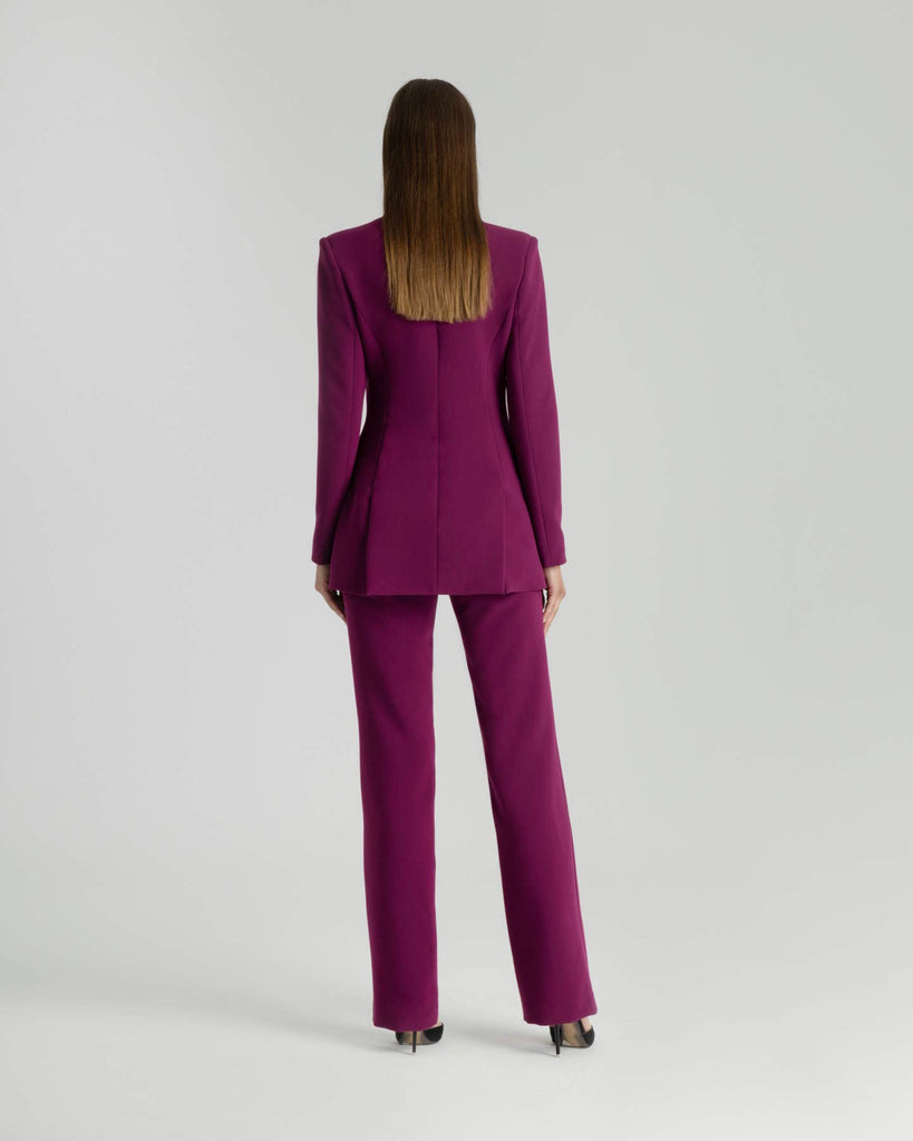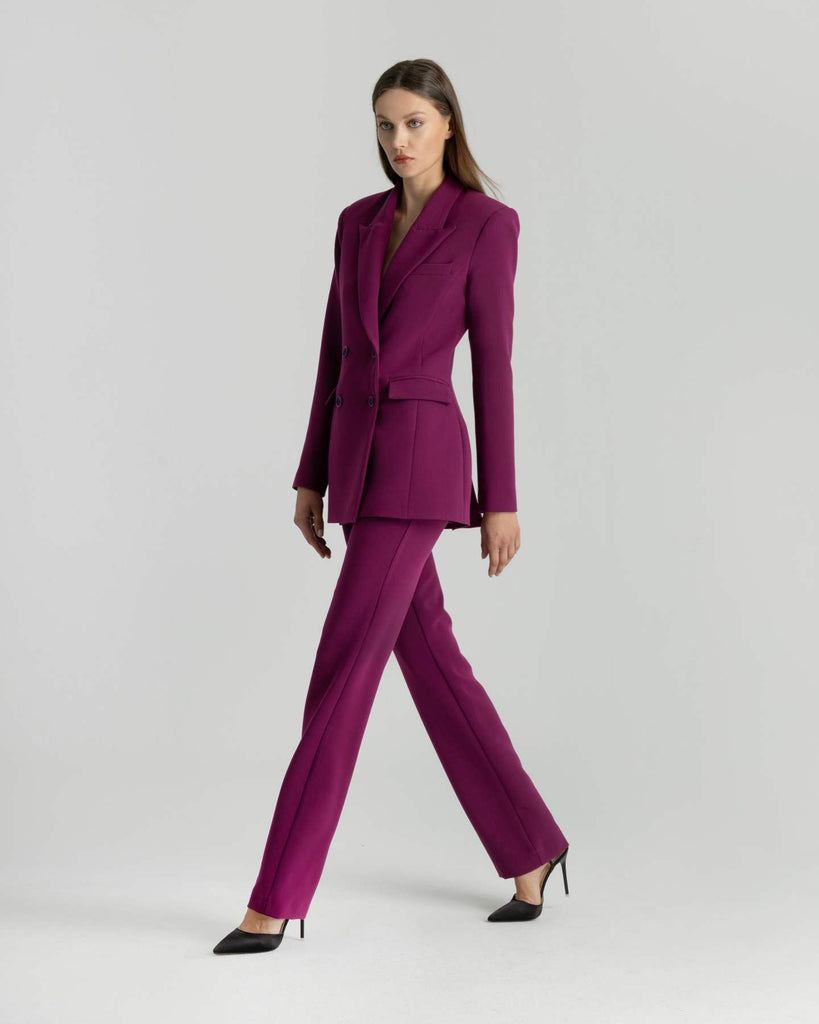 Διαχρονική κομψότητα με δυναμική παρουσία. Το σταυρωτό σακάκι σε έντονο χρώμα dark magenta αποτελεί τη νέα εκδοχή του κλασικού tailoring. Διαθέτει βάτες στους ώμους που τονίζουν τη σιλουέτα, βαθύ πέτο με sharp γραμμές και κομψά μπροστινά κουμπιά διπλής σειράς. Το πίσω μέρος έχει διακριτικά ανοίγματα στο τελείωμα που προσδίδουν ευελιξία στην κίνηση και ανεπιτήδευτη φινέτσα. Η γραμμή του είναι μεσάτη, σχεδιασμένη για να κολακεύει. , Φοριέται με το αντίστοιχο παντελόνι για μια ολοκληρωμένη, σοφιστικέ εμφάνιση γραφείου ή city chic εξόδου. Σύνθεση: 17% Ray, 78% Pes, 5% Sp Σχεδιασμένα & Κατασκευασμένα στην Ελλάδα.