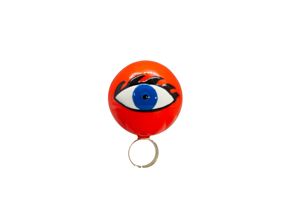 Gold plated copper alloy bulle ring, hand-painted enamel.