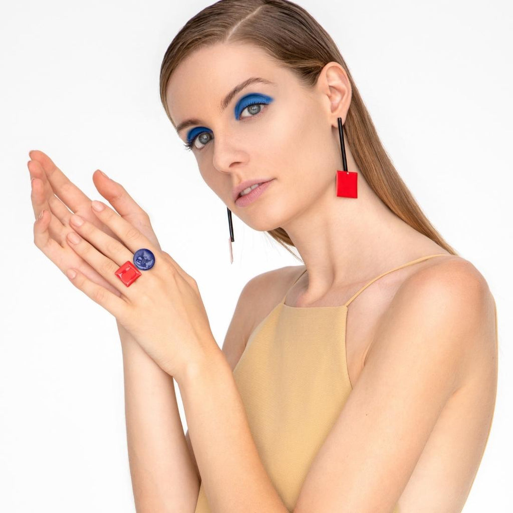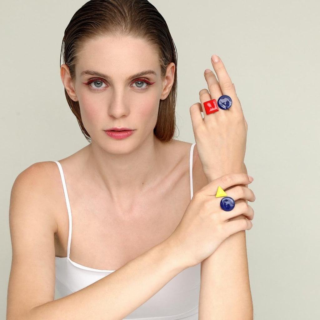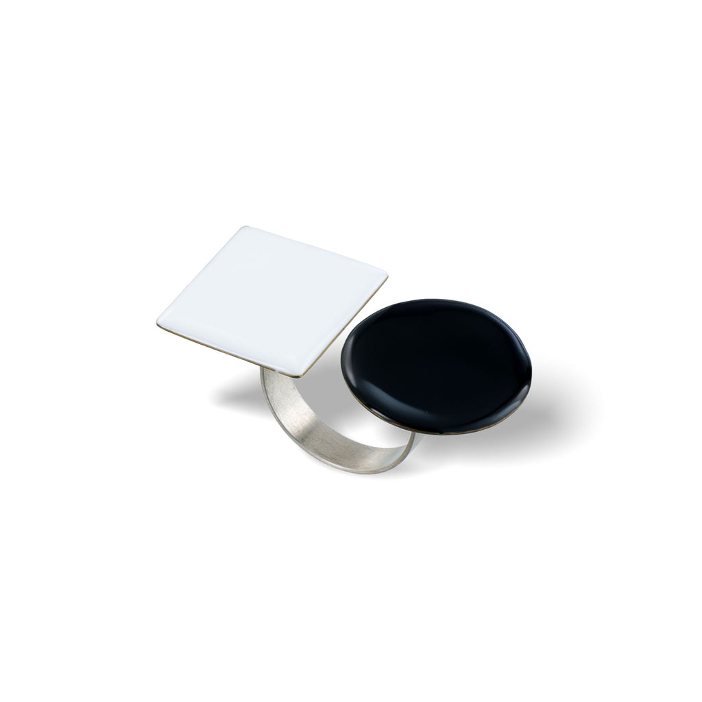 The circle and the square - δαχτυλίδι ρυθμιζόμενο με σμάλτο- ασήμι 925